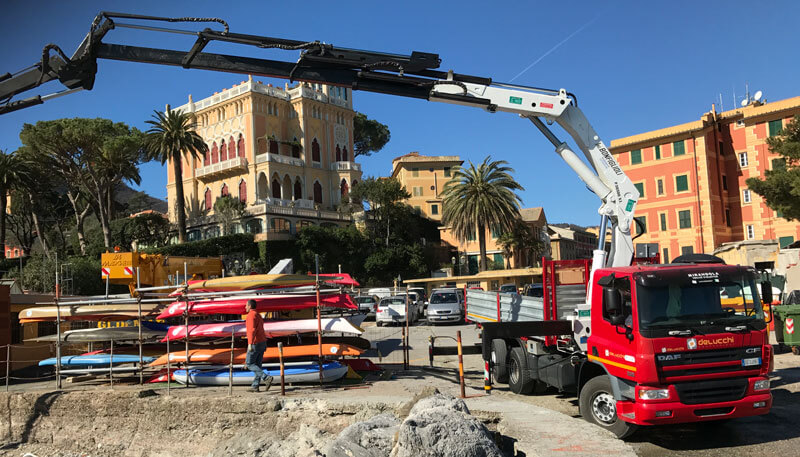 Gru su autocarro per la movimentazione di materiali e attrezzatura